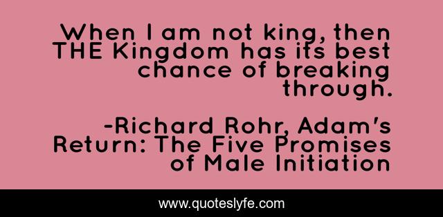 "Richard Rohr, Adam's Return: The Five Promises of Male Initiation Quotes." Quoteslyfe.com, 2025. Sun. 07 Dec. 2025. <https://www.quoteslyfe.com/quote/When-I-am-not-king-then-THE-206178>.