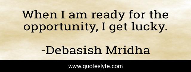 This page presents the quote "When I am ready for the opportunity, I get lucky.". Author of this quote is Debasish Mridha. This quote is about debasish-mridha, ready-for-opportunity, philosophy, how-to-get-lucky, quotes, inspirational, enthusiasm, opportunity, debasish-mridha-m-d,.