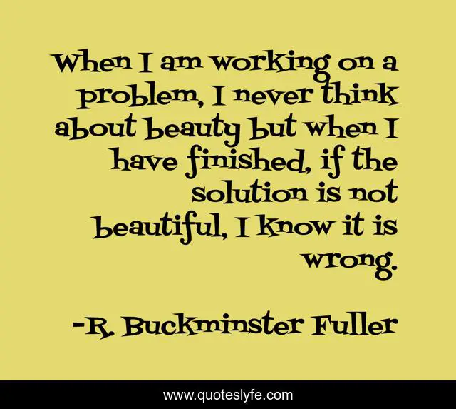This page presents the quote "When I am working on a problem, I never think about beauty but when I have finished, if the solution is not beautiful, I know it is wrong.". Author of this quote is R. Buckminster Fuller. This quote is about beautiful, problem,.