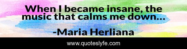 This page presents the quote "When I became insane, the music that calms me down…". Author of this quote is Maria Herliana. This quote is about insane, music,.