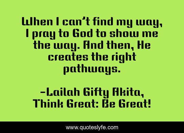 "Lailah Gifty Akita, Think Great: Be Great! Quotes." Quoteslyfe.com, 2025. Fri. 05 Dec. 2025. <https://www.quoteslyfe.com/quote/When-I-can-t-find-my-way-114907>.