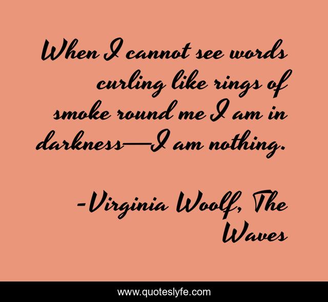 This page presents the quote "When I cannot see words curling like rings of smoke round me I am in darkness—I am nothing.". Author of this quote is Virginia Woolf, The Waves. This quote is about language, words,.