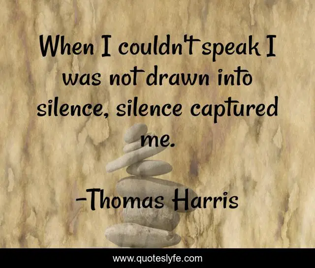 This page presents the quote "When I couldn't speak I was not drawn into silence, silence captured me.". Author of this quote is Thomas Harris. This quote is about mystery, poetic-words,.