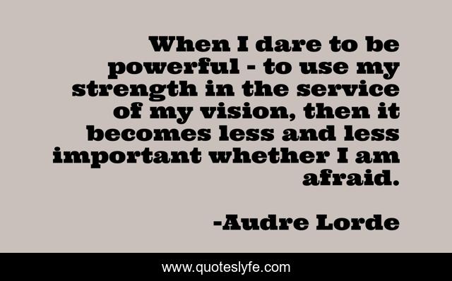 This page presents the quote "When I dare to be powerful - to use my strength in the service of my vision, then it becomes less and less important whether I am afraid.". Author of this quote is Audre Lorde. This quote is about service, vision,.
