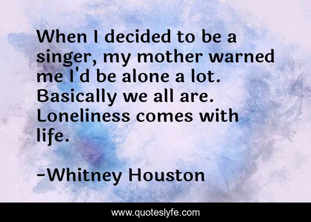 This page presents the quote "When I decided to be a singer, my mother warned me I'd be alone a lot. Basically we all are. Loneliness comes with life.". Author of this quote is Whitney Houston. This quote is about life, loneliness, mother,.
