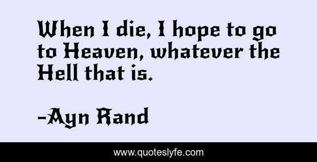 This page presents the quote "When I die, I hope to go to Heaven, whatever the Hell that is.". Author of this quote is Ayn Rand. This quote is about hell, death, die,.