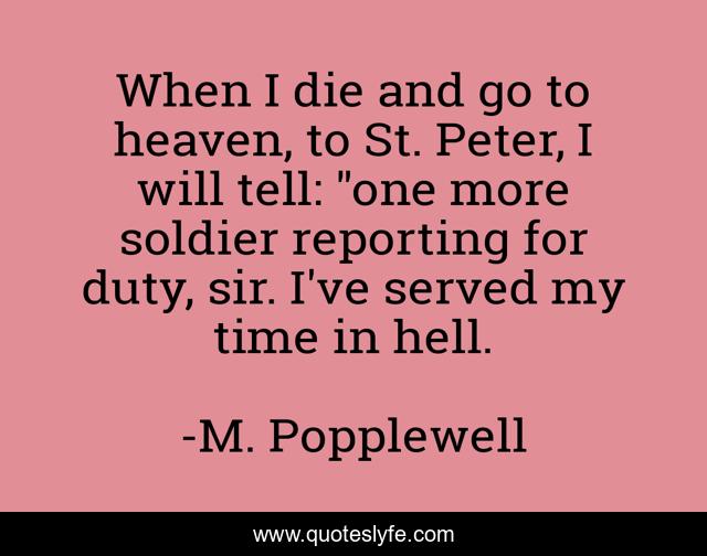 This page presents the quote "When I die and go to heaven, to St. Peter, I will tell: "one more soldier reporting for duty, sir. I've served my time in hell.". Author of this quote is M. Popplewell. This quote is about religious, life-and-death,.