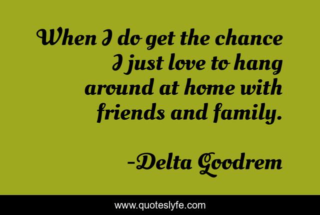 This page presents the quote "When I do get the chance I just love to hang around at home with friends and family.". Author of this quote is Delta Goodrem. This quote is about home, friends, affection, love,.