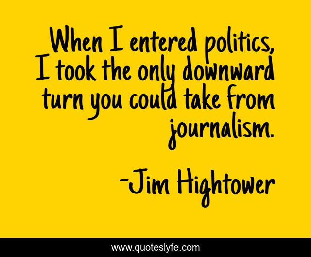 This page presents the quote "When I entered politics, I took the only downward turn you could take from journalism.". Author of this quote is Jim Hightower. This quote is about turn, journalism,.