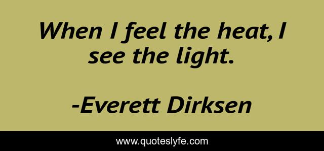 This page presents the quote "When I feel the heat, I see the light.". Author of this quote is Everett Dirksen. This quote is about optimisim, light, dual-meaning, heat, problems, governments, troubles,.