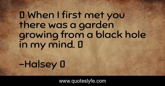 This page presents the quote "✵ When I first met you there was a garden growing from a black hole in my mind. ✵". Author of this quote is Halsey ♥. This quote is about adroitness, lyrics,.