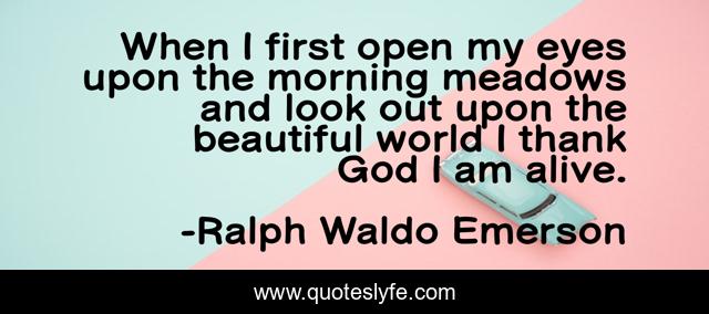 This page presents the quote "When I first open my eyes upon the morning meadows and look out upon the beautiful world I thank God I am alive.". Author of this quote is Ralph Waldo Emerson. .