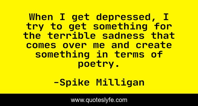 This page presents the quote "When I get depressed, I try to get something for the terrible sadness that comes over me and create something in terms of poetry.". Author of this quote is Spike Milligan. This quote is about me, try, sadness,.
