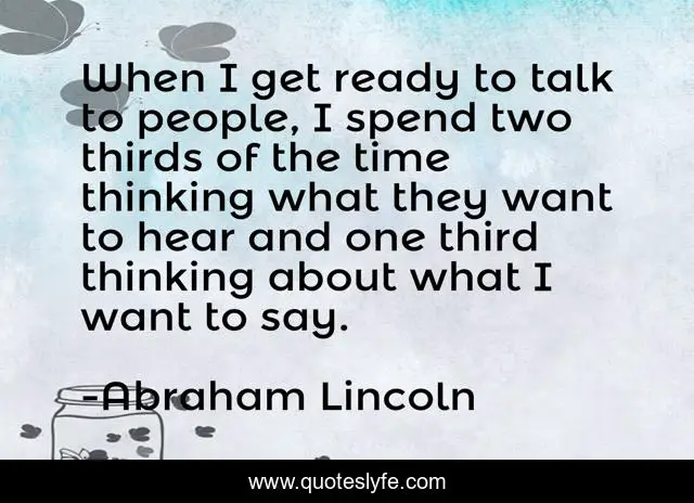 This page presents the quote "When I get ready to talk to people, I spend two thirds of the time thinking what they want to hear and one third thinking about what I want to say.". Author of this quote is Abraham Lincoln. This quote is about thinking, politics, empathy, political-advice, talking,.