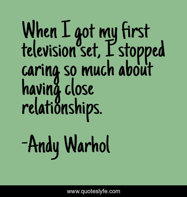 This page presents the quote "When I got my first television set, I stopped caring so much about having close relationships.". Author of this quote is Andy Warhol. This quote is about caring, television,.