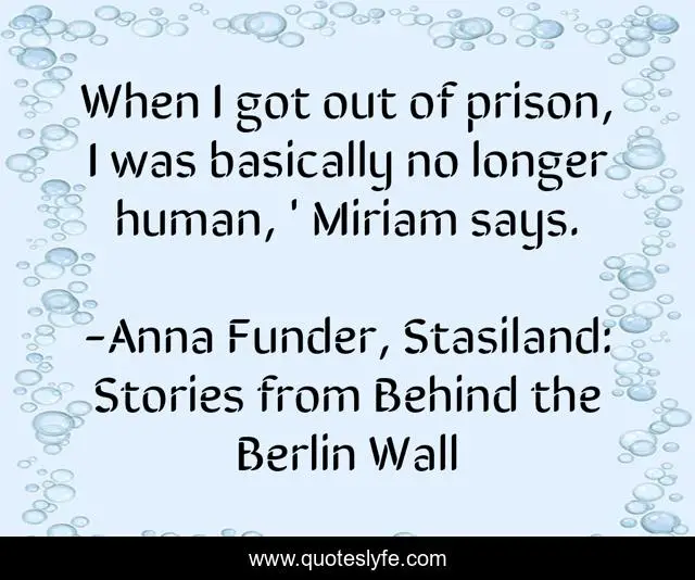 "Anna Funder, Stasiland: Stories from Behind the Berlin Wall Quotes." Quoteslyfe.com, 2025. Fri. 05 Dec. 2025. <https://www.quoteslyfe.com/quote/When-I-got-out-of-prison-I-165087>.