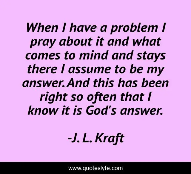 This page presents the quote "When I have a problem I pray about it and what comes to mind and stays there I assume to be my answer. And this has been right so often that I know it is God's answer.". Author of this quote is J. L. Kraft. .