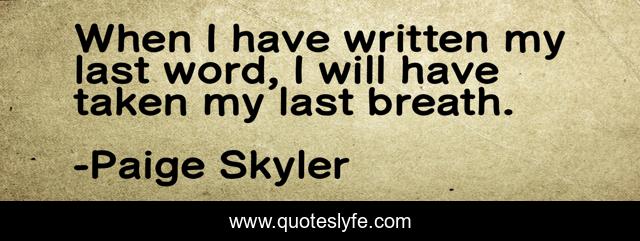 "Paige Skyler Quotes." Quoteslyfe.com, 2025. Sun. 07 Dec. 2025. <https://www.quoteslyfe.com/quote/When-I-have-written-my-last-word-248909>.