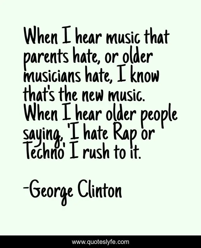 This page presents the quote "When I hear music that parents hate, or older musicians hate, I know that's the new music. When I hear older people saying, 'I hate Rap or Techno' I rush to it.". Author of this quote is George Clinton. This quote is about parents, musicians, hate,.
