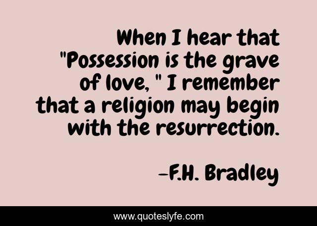 This page presents the quote "When I hear that "Possession is the grave of love, " I remember that a religion may begin with the resurrection.". Author of this quote is F.H. Bradley. This quote is about possession, love, religion, marriage, resurrection, monogamy, affection,.
