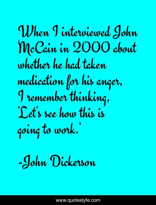 This page presents the quote "When I interviewed John McCain in 2000 about whether he had taken medication for his anger, I remember thinking, 'Let's see how this is going to work.'". Author of this quote is John Dickerson. This quote is about thinking, work, remember,.
