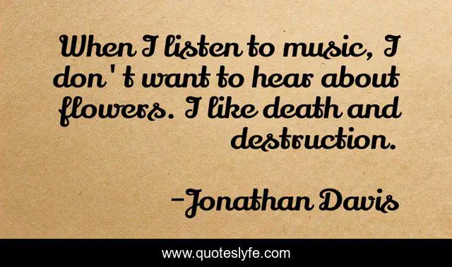 This page presents the quote "When I listen to music, I don't want to hear about flowers. I like death and destruction.". Author of this quote is Jonathan Davis. This quote is about flowers, music,.