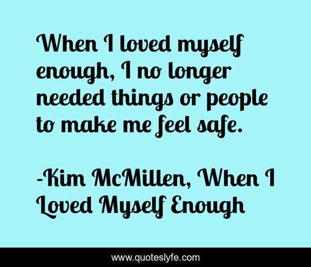This page presents the quote "When I loved myself enough, I no longer needed things or people to make me feel safe.". Author of this quote is Kim McMillen, When I Loved Myself Enough. .