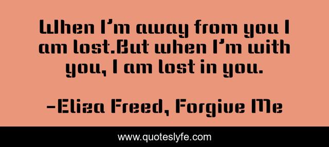 This page presents the quote "When I’m away from you I am lost.But when I’m with you, I am lost in you.". Author of this quote is Eliza Freed, Forgive Me. This quote is about new-adult, contemporary-romance, western-romance,.