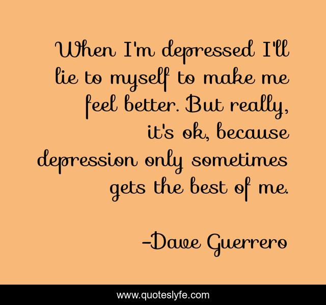 This page presents the quote "When I'm depressed I'll lie to myself to make me feel better. But really, it's ok, because depression only sometimes gets the best of me.". Author of this quote is Dave Guerrero. .