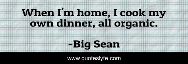 This page presents the quote "When I'm home, I cook my own dinner, all organic.". Author of this quote is Big Sean. This quote is about cook, dinner, my own,.