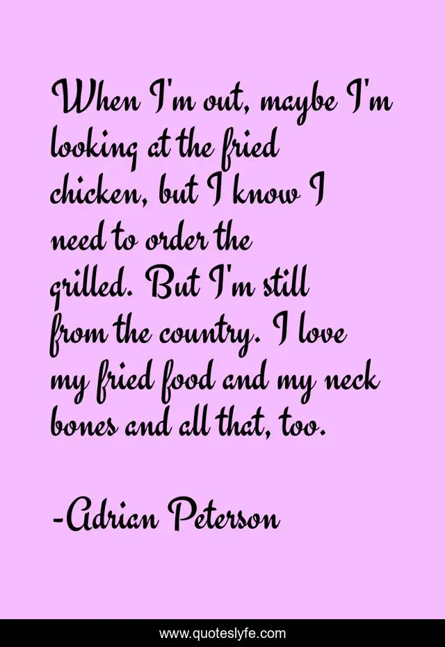 This page presents the quote "When I'm out, maybe I'm looking at the fried chicken, but I know I need to order the grilled. But I'm still from the country. I love my fried food and my neck bones and all that, too.". Author of this quote is Adrian Peterson. This quote is about looking, love, affection,.