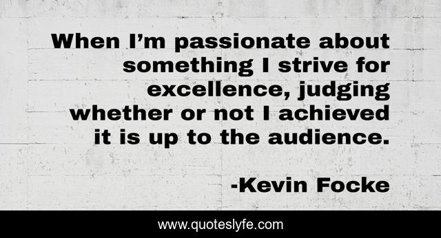 This page presents the quote "When I’m passionate about something I strive for excellence, judging whether or not I achieved it is up to the audience.". Author of this quote is Kevin Focke. This quote is about art, quality, writing,.
