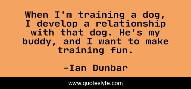 This page presents the quote "When I'm training a dog, I develop a relationship with that dog. He's my buddy, and I want to make training fun.". Author of this quote is Ian Dunbar. This quote is about fun, training, dog,.