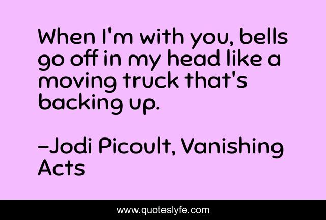 This page presents the quote "When I'm with you, bells go off in my head like a moving truck that's backing up.". Author of this quote is Jodi Picoult, Vanishing Acts. .
