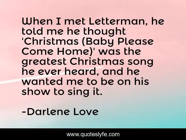 This page presents the quote "When I met Letterman, he told me he thought 'Christmas (Baby Please Come Home)' was the greatest Christmas song he ever heard, and he wanted me to be on his show to sing it.". Author of this quote is Darlene Love. This quote is about baby, home, me,.