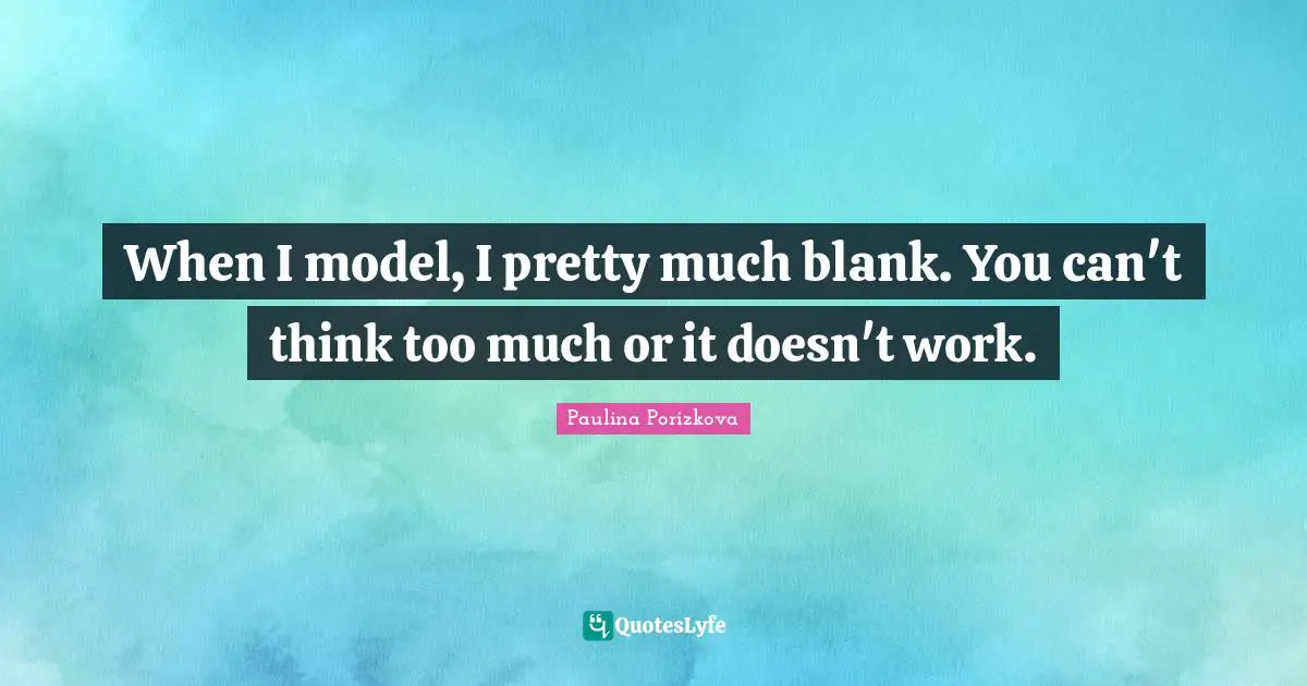 This page presents the quote "When I model, I pretty much blank. You can't think too much or it doesn't work.". Author of this quote is Paulina Porizkova. This quote is about blank, thinking, work, too much,.