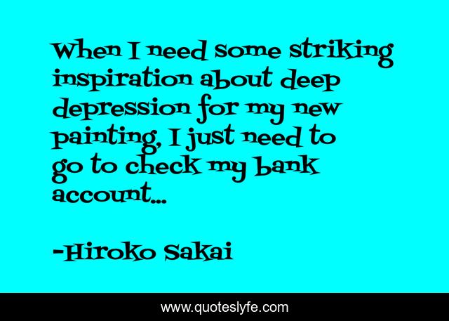 This page presents the quote "When I need some striking inspiration about deep depression for my new painting, I just need to go to check my bank account...". Author of this quote is Hiroko Sakai. This quote is about funny, life, bank-account, artist, humorous, witty, struggling-artist, wit, comedy,.