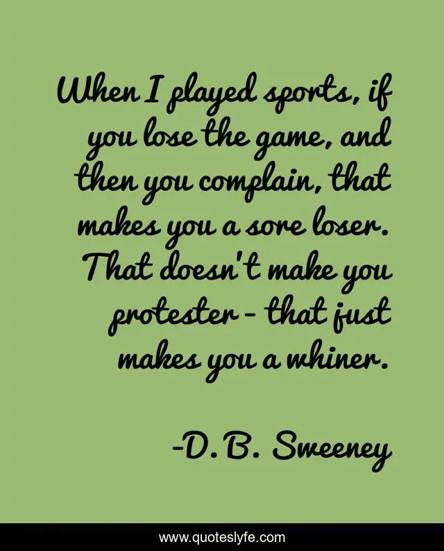 This page presents the quote "When I played sports, if you lose the game, and then you complain, that makes you a sore loser. That doesn't make you protester - that just makes you a whiner.". Author of this quote is D. B. Sweeney. This quote is about game, loser,.
