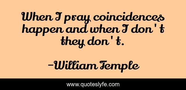 This page presents the quote "When I pray coincidences happen and when I don't they don't.". Author of this quote is William Temple. .