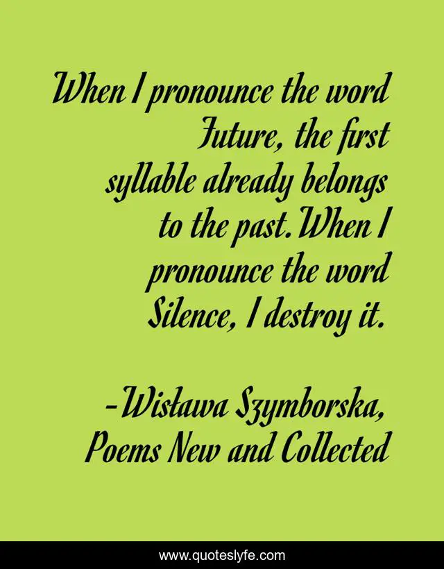 "Wisława Szymborska, Poems New and Collected Quotes." Quoteslyfe.com, 2025. Sat. 06 Dec. 2025. <https://www.quoteslyfe.com/quote/When-I-pronounce-the-word-Future-the-109795>.