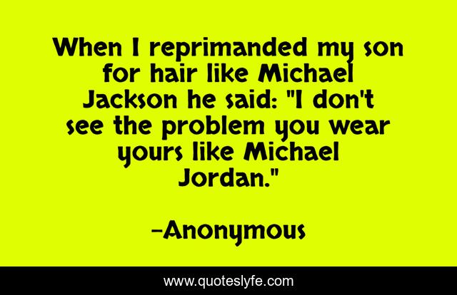 This page presents the quote "When I reprimanded my son for hair like Michael Jackson he said: "I don't see the problem you wear yours like Michael Jordan."". Author of this quote is Anonymous. .