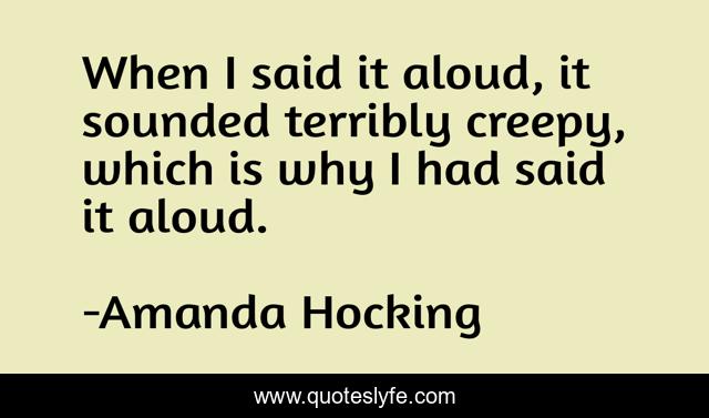 This page presents the quote "When I said it aloud, it sounded terribly creepy, which is why I had said it aloud.". Author of this quote is Amanda Hocking. This quote is about funny, comedy, alice, creepy, my-blood-approves,.