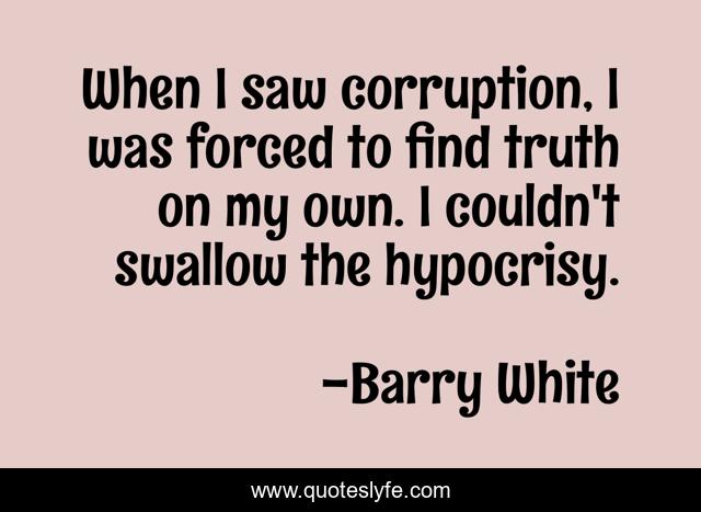 This page presents the quote "When I saw corruption, I was forced to find truth on my own. I couldn't swallow the hypocrisy.". Author of this quote is Barry White. This quote is about hypocrisy, find, corruption,.