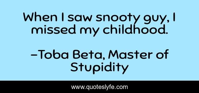 This page presents the quote "When I saw snooty guy, I missed my childhood.". Author of this quote is Toba Beta, Master of Stupidity. This quote is about childish, snooty, arrogance,.