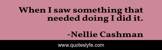 This page presents the quote "When I saw something that needed doing I did it.". Author of this quote is Nellie Cashman. This quote is about self, reliance,.