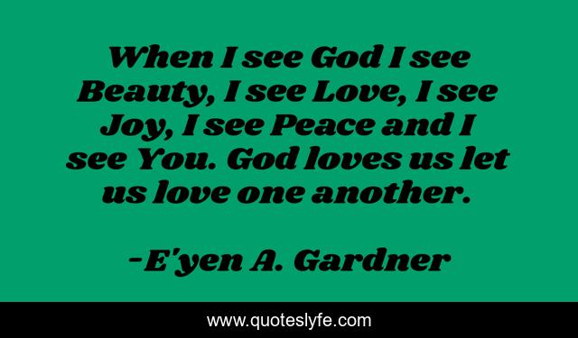 This page presents the quote "When I see God I see Beauty, I see Love, I see Joy, I see Peace and I see You. God loves us let us love one another.". Author of this quote is E'yen A. Gardner. This quote is about god, love, affection,.