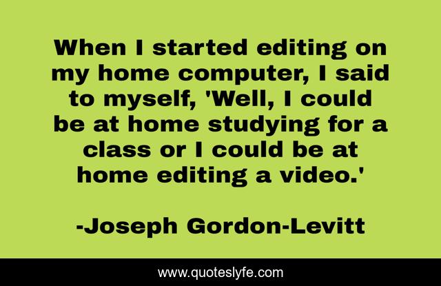 This page presents the quote "When I started editing on my home computer, I said to myself, 'Well, I could be at home studying for a class or I could be at home editing a video.'". Author of this quote is Joseph Gordon-Levitt. This quote is about studying, myself, editing,.
