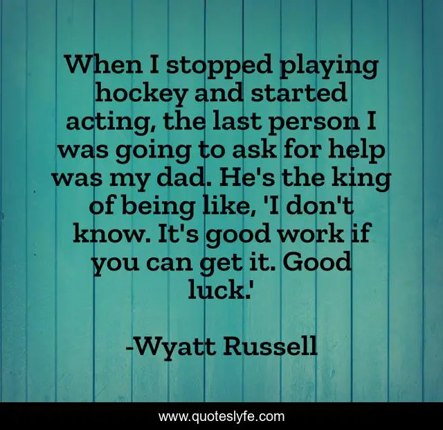 This page presents the quote "When I stopped playing hockey and started acting, the last person I was going to ask for help was my dad. He's the king of being like, 'I don't know. It's good work if you can get it. Good luck.'". Author of this quote is Wyatt Russell. This quote is about work, good, hockey,.