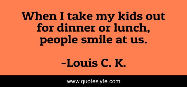 This page presents the quote "When I take my kids out for dinner or lunch, people smile at us.". Author of this quote is Louis C. K.. This quote is about lunch, dinner, people,.