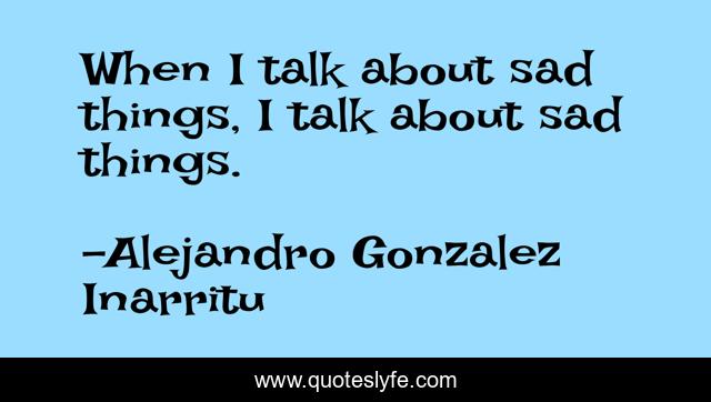 This page presents the quote "When I talk about sad things, I talk about sad things.". Author of this quote is Alejandro Gonzalez Inarritu. This quote is about things, talk, sad things,.